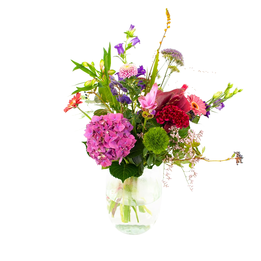 Met Boeket Paarse Passie breng je een prachtig boeket met paarse tinten in huis! Verwen jezelf met mooie bloemen of verras iemand anders! *Exclusief accessoires en vaas.