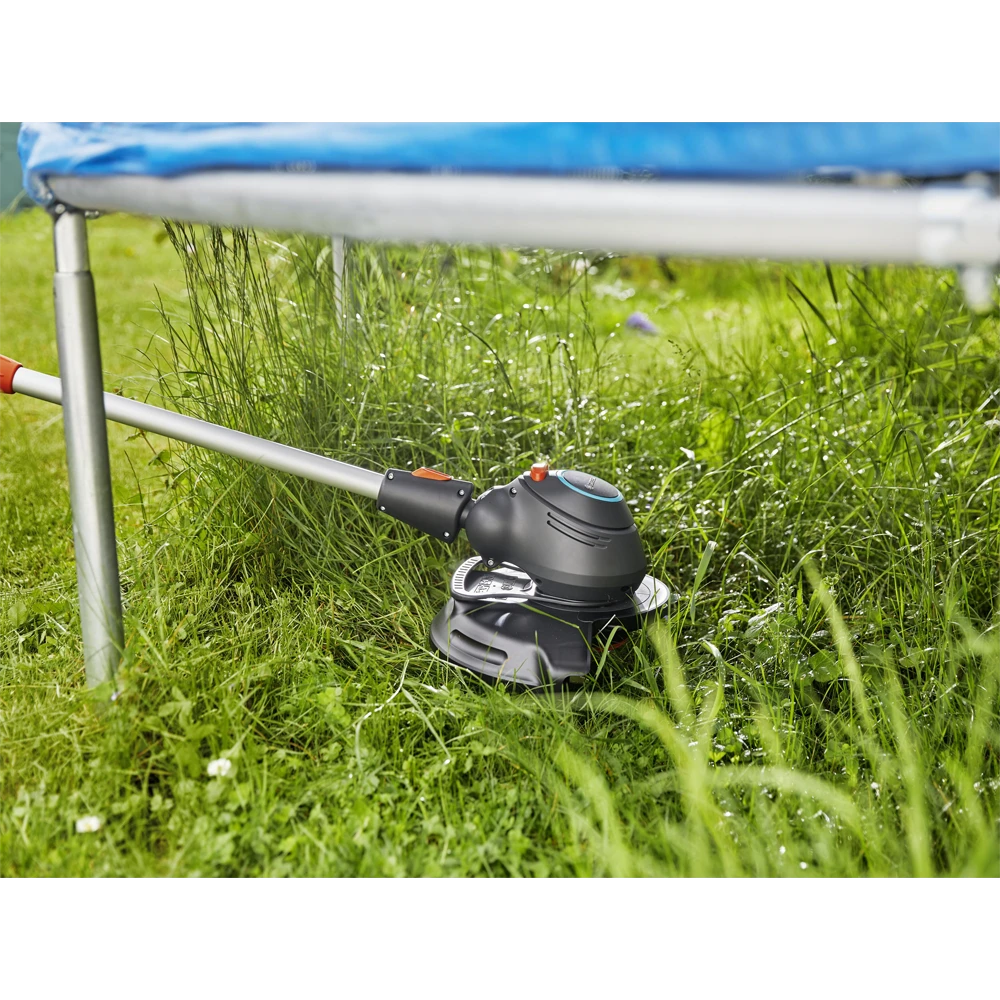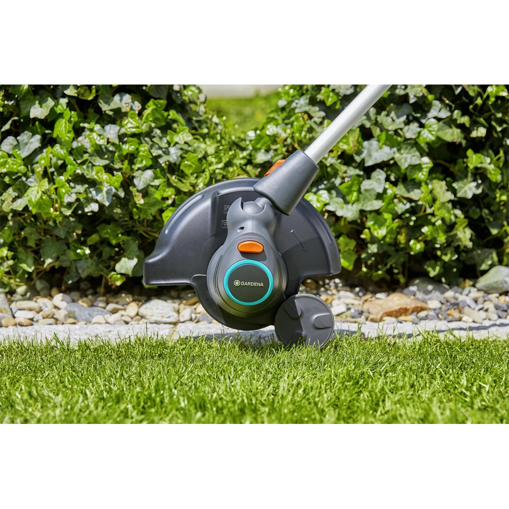 Comfortabel gras trimmen: dat is wat de Turbotrimmer ComfortCut 550/28 van GARDENA zo speciaal maakt. Op deze manier wordt de zorg voor uw gazon veel gemakkelijker – zelfs op moeilijk bereikbare plaatsen of gazonranden. Het lage gewicht van de ComfortCut 550/28 komt goed van pas. U kunt gemakkelijk lang in uw tuin werken zonder vermoeidheid te voelen.Voordat u begint, kunt u de Turbotrimmer eenvoudig aanpassen aan uw behoeften. Het handvat en de telescopische steel zijn verstelbaar zodat u een comfortabele houding kunt behouden tijdens het werken in uw tuin. Bovendien is de werkhoek van de trimmerkop verstelbaar. Dit is vooral handig wanneer u rond obstakels zoals een tafel snoeit. Bekijk ook eens de kantelfunctie van de kop waardoor de trimmer verandert in een graskantsnijder: op deze manier kunt u moeiteloos de randjes langs tuinpad of omheining netjes houden. En maakt u zich geen zorgen, uw planten worden door de verwijderbare plantbeschermbeugel beschermd tijdens het trimmen.